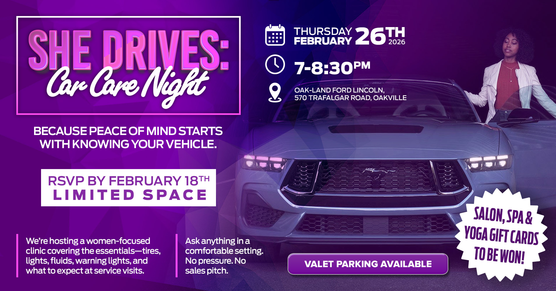 Learn the essentials of car care in a relaxed environment with no pressure. Ask the experts anything and increase your peace of mind by getting to know your vehicle. We’ll discuss tires, headlights, fluids, warning lights, and what to expect when you bring your vehicle in for service at Oak-Land Ford Lincoln.